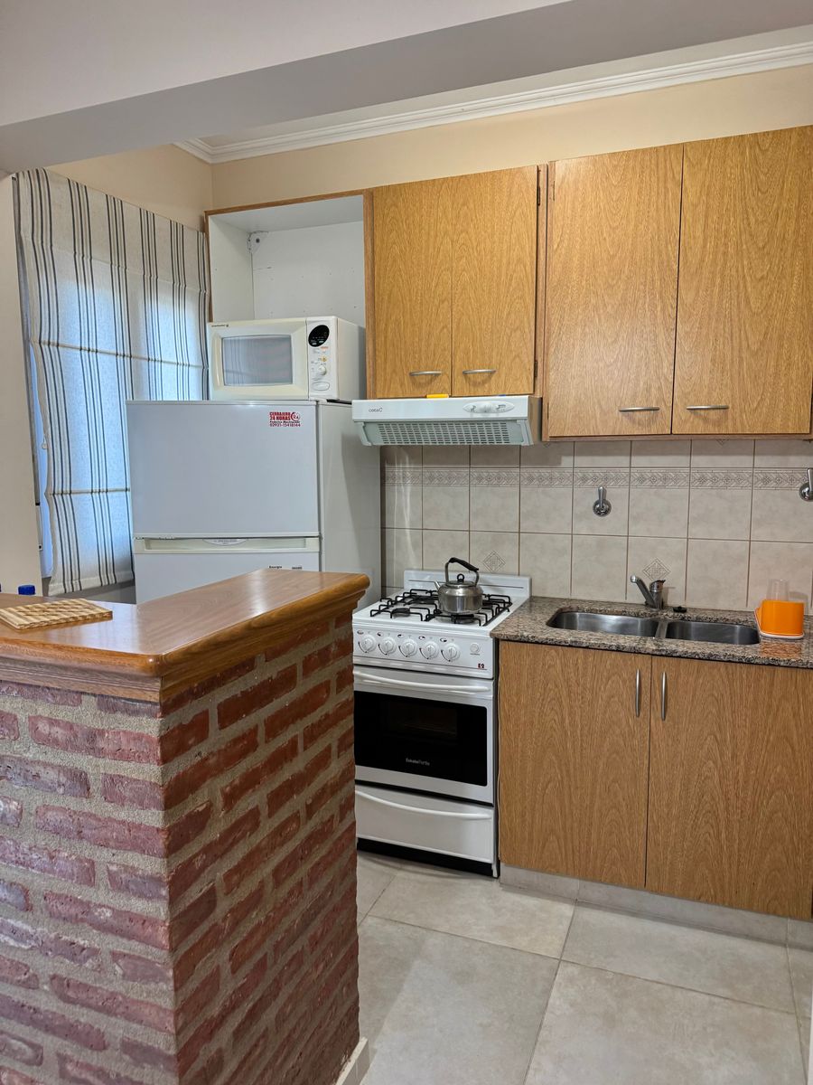 Departamento en excelente ubicación a 2 cuadras del centro y 4 cuadras de la playa, 2 dormitorios, 1 baño completo, estar comedor con cocina integrada, patio, pileta de lavadero, cochera cubierta, gas natural, calefactor en dormitorio principal y living, cómodo y a pasos de los principales centro de interés.