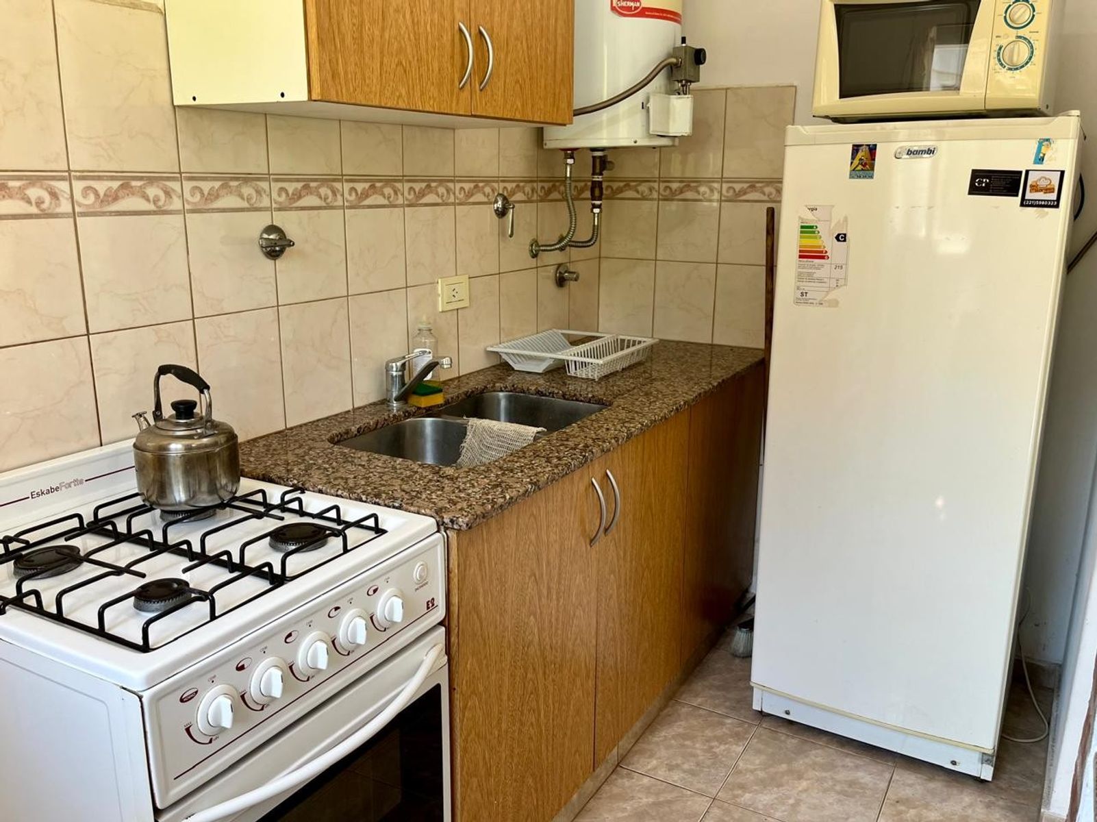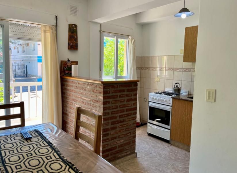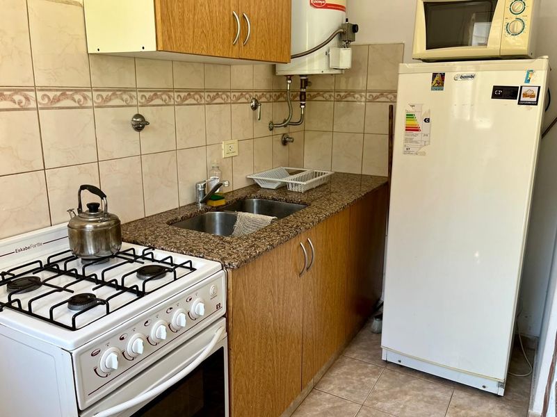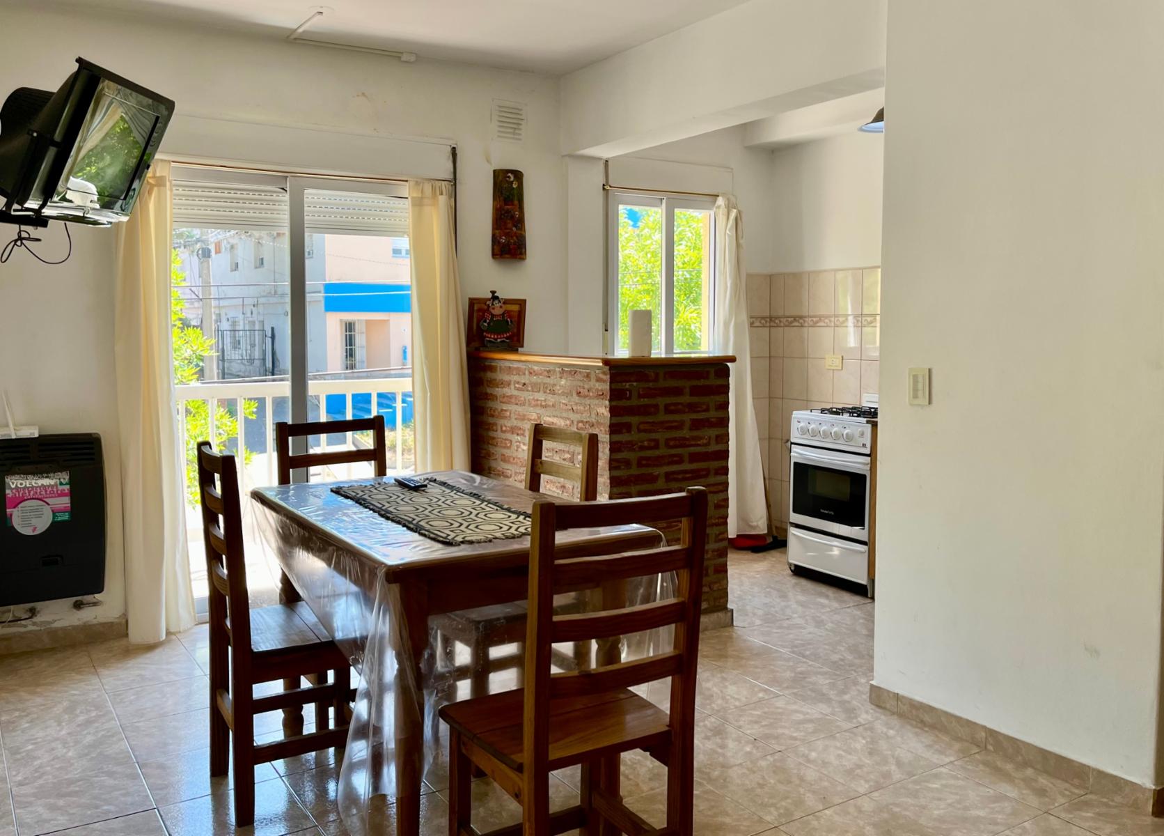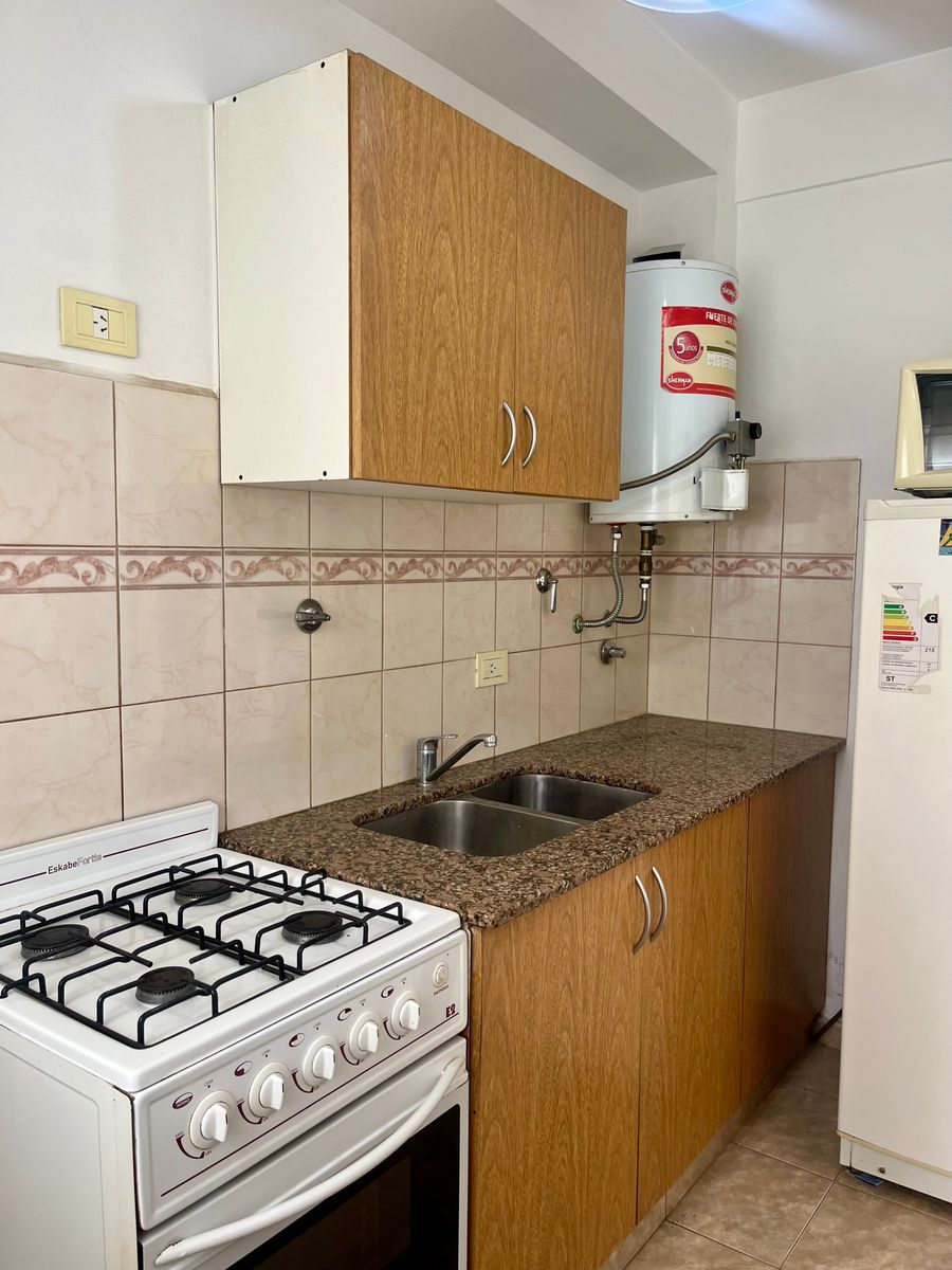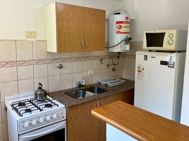 Código 1818-v119 | Departamento en Ed. Tres Ciudades, excelente ubicación a 2 cuadras del centro y 4 cuadras de la playa, 1 dormitorio, 1 baño completo, estar comedor con cocina integrada, balcón, cochera cubierta, gas natural, calefactor en dormitorio principal y living, cómodo y a pasos de los principales centro de interés.
